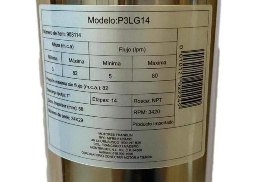 - Bomba esbelta de 3” de diámetro