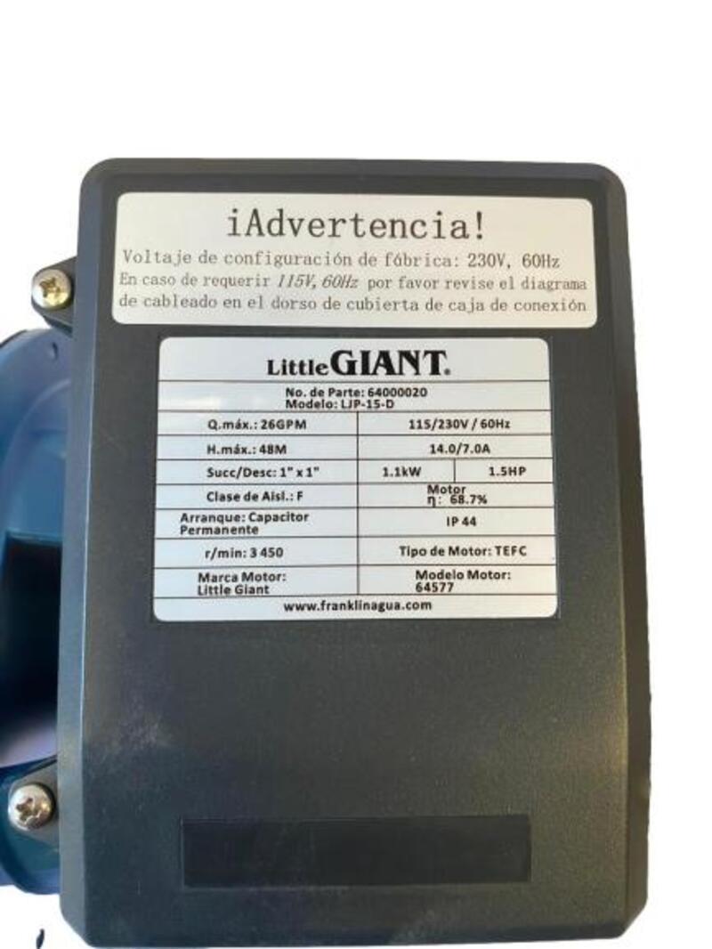 Motobomba tipo JET Acero Inoxidable de superficie para agua limpia Marca LITTLE GIANT (FRANKLIN ELECTRIC)