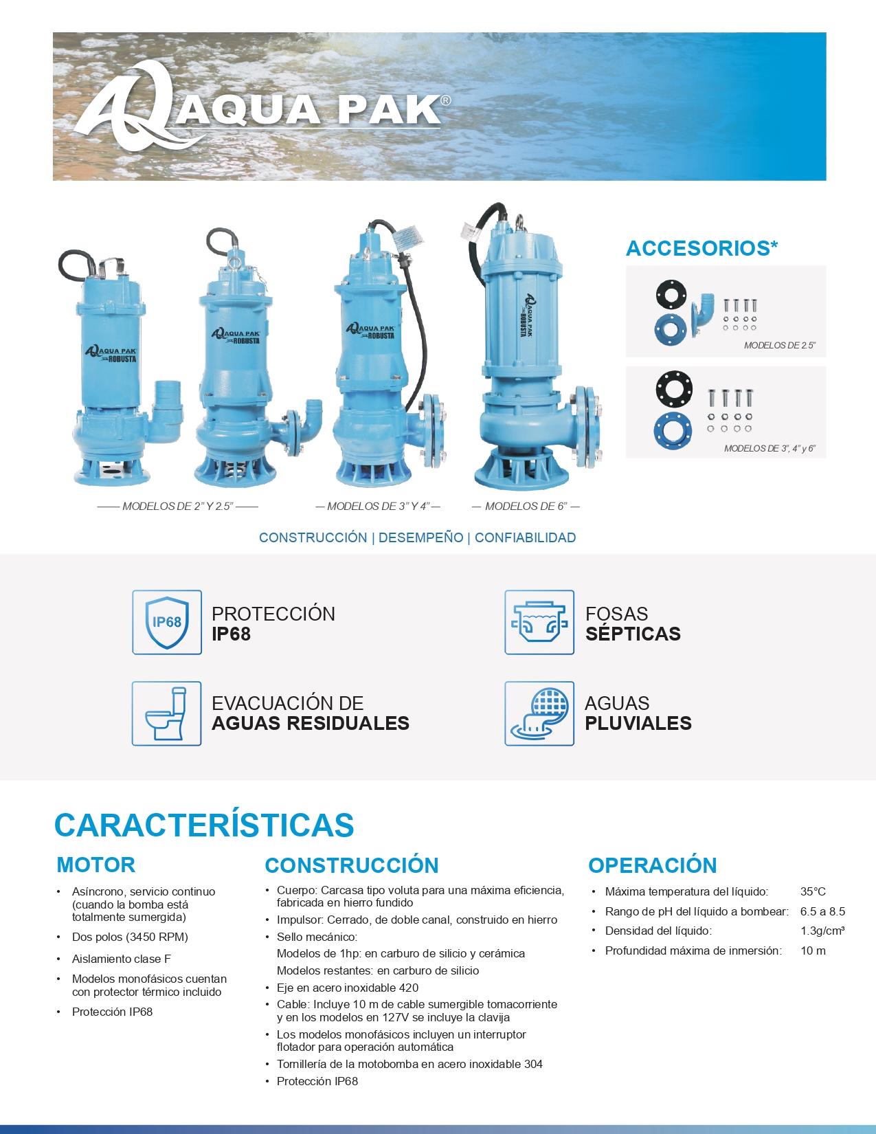 Rango de pH del líquido a bombear: 6.5 a 8.5