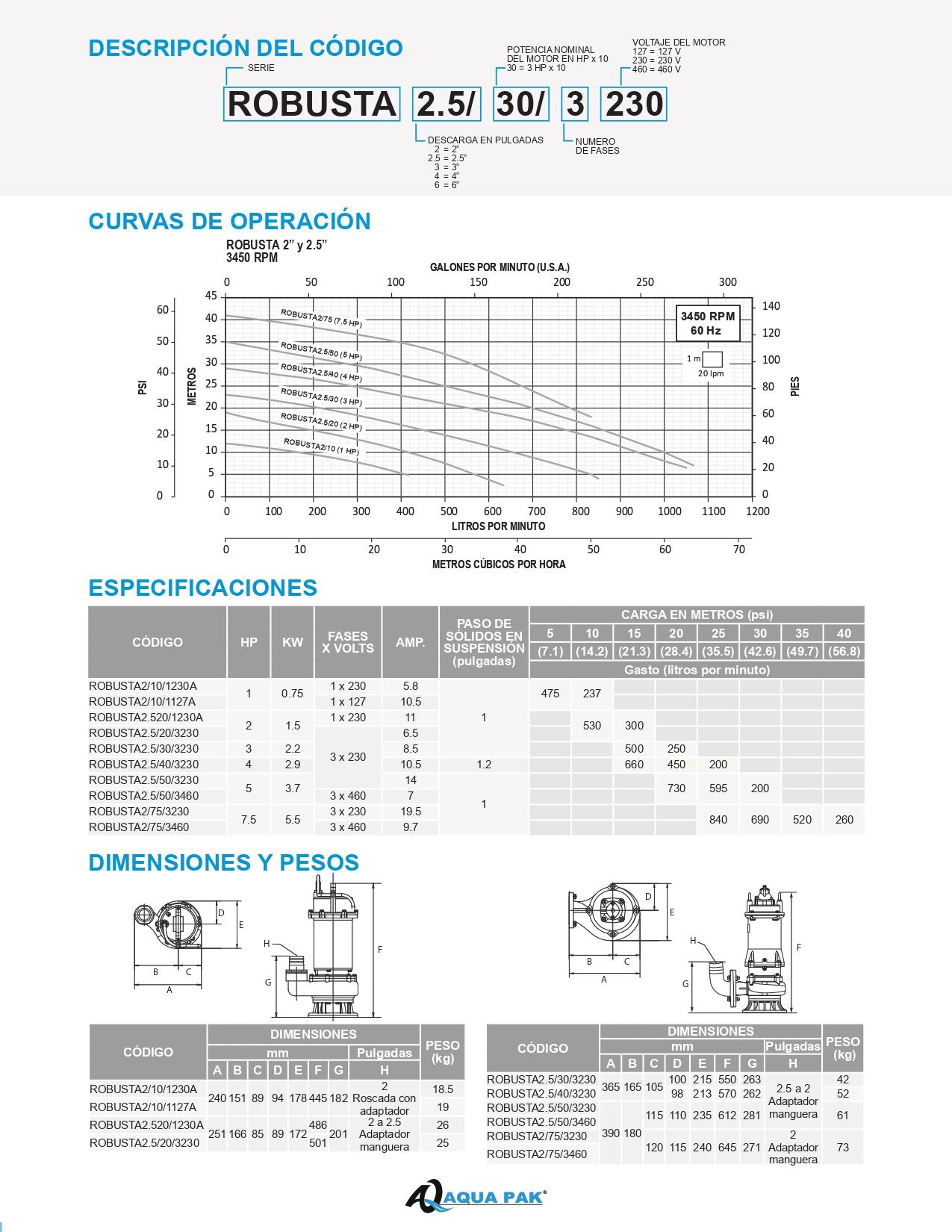 Rango de operación: 10 – 17 mts, flujo 100 – 550 lpm